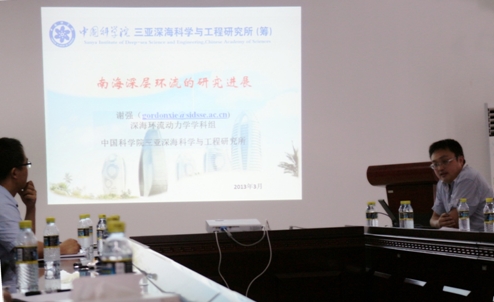 謝強做了題為“南海深層環流分析”的報告,介紹了國內對呂宋“深水瀑布”的研究情況,并對新“Neptune”(海神)方案和不同模式的南海深海環流分析做了簡要介紹,就未來的現場資料收集和分析工作做了規劃。