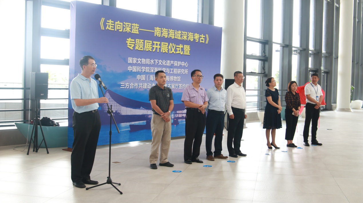 2019年3月22日上午,《走向深藍(lán)——南海海域深海考古》專題展開展儀式暨國(guó)家文物局水下文化遺產(chǎn)保護(hù)中心、中國(guó)科學(xué)院深海科學(xué)與工程研究所、中國(guó)(海南)南海博物館三方合作共建動(dòng)態(tài)水下考古展廳簽約儀式在中國(guó)(海南)南海博物館順利舉行。