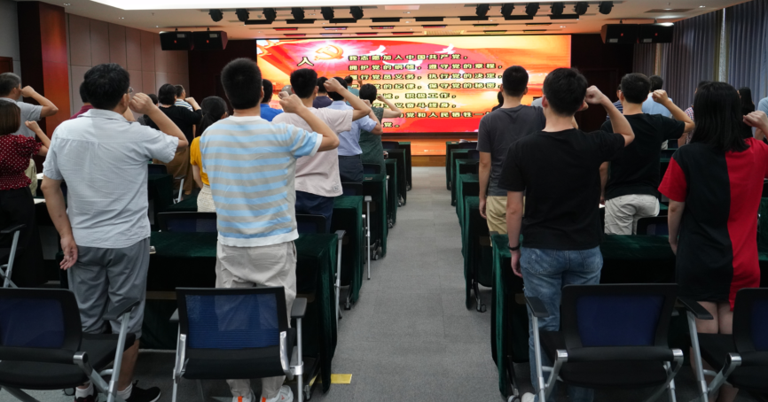 會議首先進行了重溫入黨誓詞活動,全體黨員在領誓人所長首席顧問劉心成的帶領下,高舉右手,莊嚴宣誓。