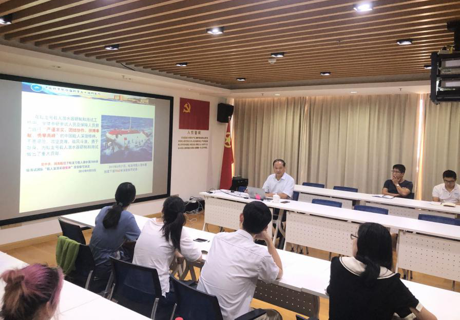 為加強黨員黨性教育,促進黨建工作和業務工作的深度融合,9月18日,科學部第一黨支部和第二黨支部在綜合樓905黨群活動室聯合組織開展了“解讀中國載人深潛精神”專題黨課活動,邀請所首席顧問劉心成主講。