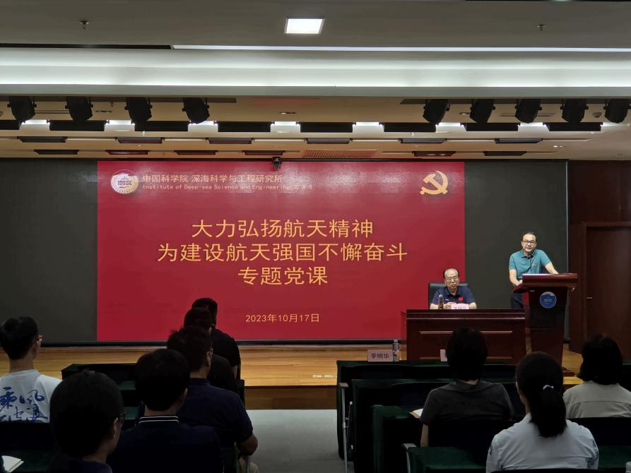本次專題黨課對于了解航天事業和航天精神,助推航天強國建設,助力實現中華民族偉大復興的中國夢,具有理論和現實的指導意義。“上九天攬月,下五洋捉鱉”,航天精神同載人深潛和深淵科考精神同氣連枝,本次黨課也對推進深海所特色文化體系建設具有很強的啟示作用。航天精神是托起飛天夢的精神之翼,是全體中國人民寶貴的民族精神財富,它的實踐經驗和偉大精神閃爍著時代的光芒,極大地激勵了全體深海人為海洋強國建設目標篤定前行。