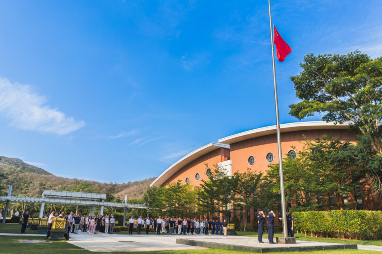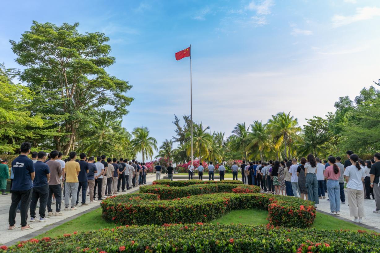 上午8點30分,升旗儀式正式開始。伴隨著雄壯的《義勇軍進行曲》,五星紅旗在研究所海邊冉冉升起,全場人員莊嚴肅立,面向五星紅旗行注目禮。