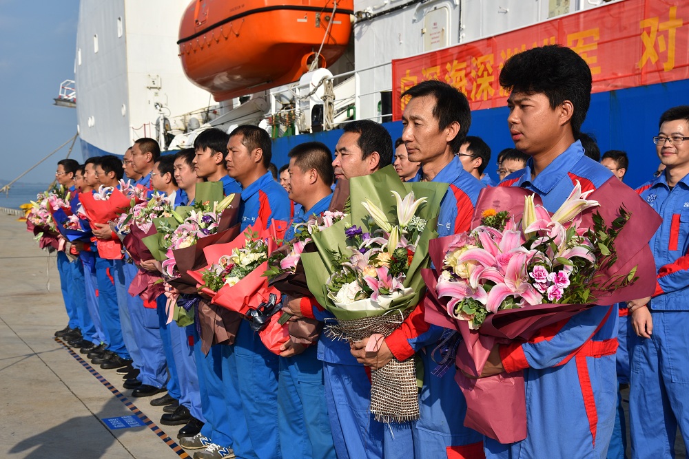 23日上午8:30,中國科學院丁仲禮副院長、海南省科技廳副廳長王利生、科技部、國家海洋局北海分局、三亞市等有關部門和單位領導、參航單位代表、科考隊員家屬代表在三亞港碼頭歡迎科考隊凱旋。