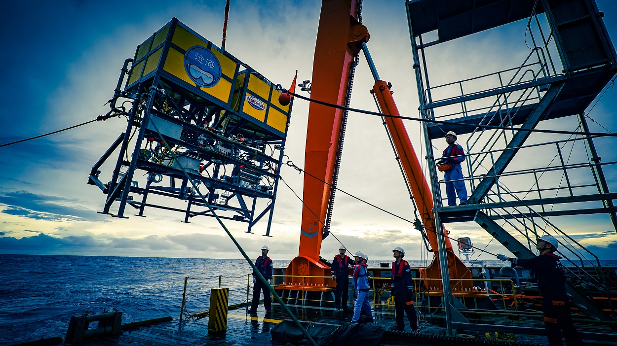 正在進行回收作業的滄海號深海著陸器(張桅供圖)