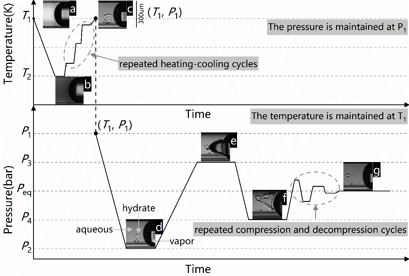 相比于甲烷水合物,硫化氫水合物熱力學、動力學方面的基礎研究還比較缺乏,而自然界的天然氣水合物往往是多種氣體的混合物(如含有硫化氫、二氧化碳),相關基礎研究與環境、能源問題密切相關。針對硫化氫水合物的微觀特征及熱力學穩定性問題,深海極端模擬實驗室蔣磊團隊通過采用熔融毛細硅管原位觀測和激光拉曼光譜技術相結合的方法完成兩項研究成果,分別發表《ACS Omega》《Chemical Engineering Journal》