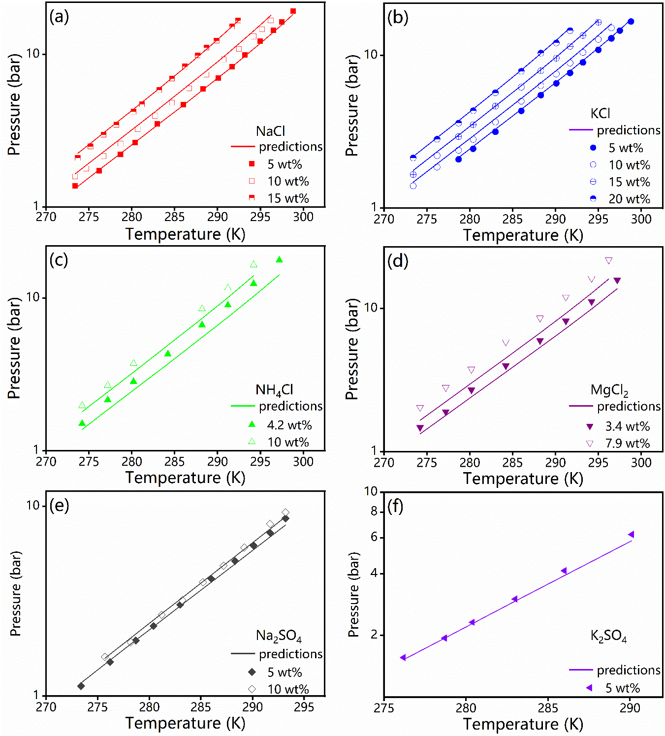另外,研究團隊測量了H2S水合物在多種電解質溶液中的分解條件。實驗結果表明,電解質濃度與抑制效應呈正相關;相同濃度條件下,MgCl2具有最強的抑制效果。在實驗數據基礎上,該研究建立了相關的熱力學模型,準確地預測出H2S水合物在不同電解質溶液中的分解條件,并給出相應的分解焓。在機理分析方面,通過拉曼光譜手段揭示了電解質通過改變溶液中氫鍵強度來影響水的活度,從而影響水合物的相平衡條件。相關研究成果發表于Chemical Engineering Journal,“Experimental measurement and thermodynamic modeling of dissociation conditions of hydrogen sulfide hydrate in the presence of electrolyte solutions(DOI: 10.1016/j.cej.2021.133821)。文章第一作者為深海所博士研究生孫既粵,共同第一作者為西北大學孫睿教授,通訊作者為蔣磊研究員。