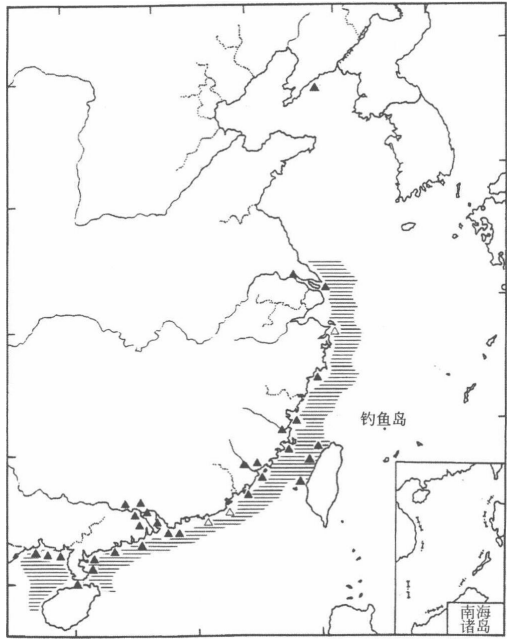 圖3. 中國(guó)水域中華白海豚的分布(圖片來(lái)源:王丕烈《中國(guó)鯨類》)