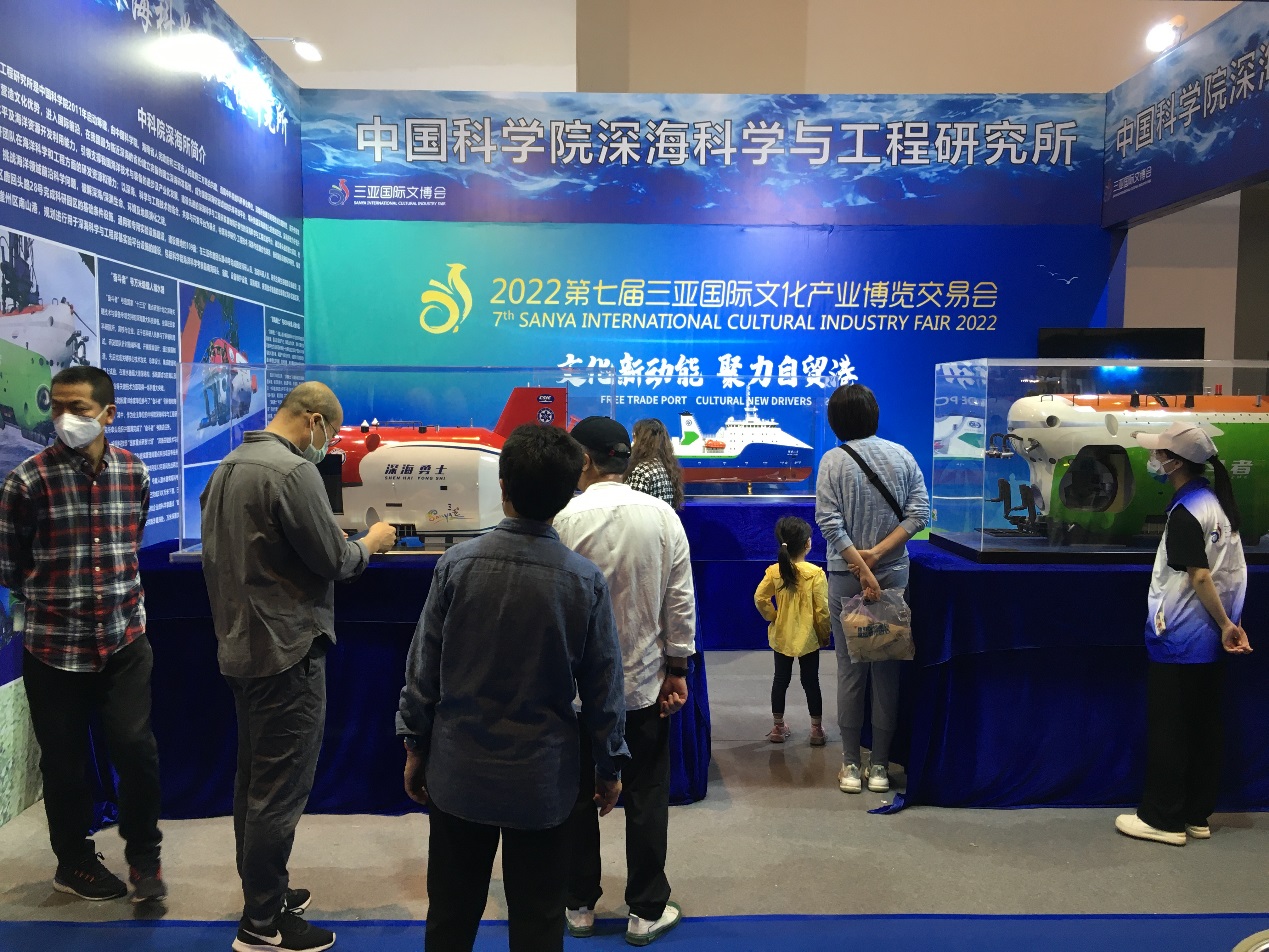 本屆文博會主會場設(shè)在三亞市紅樹林國際會展中心,設(shè)有“海上絲路”文化展、全球文旅精品展、中華文化帶展、自貿(mào)港文化展、科技文化展等五大專題展區(qū)及“云上文博”線上直播展廳。深海所受邀作為“海上絲路”文化展單位展出“深海勇士”號、“奮斗者”號載人潛水器模型以及“探索一號”科考船模型,并通過播放科考紀錄片的形式,幫助觀眾了解載人潛水器深海科考的作業(yè)場景和“奮斗者”號的海試過程,該成果受到市民的關(guān)注。