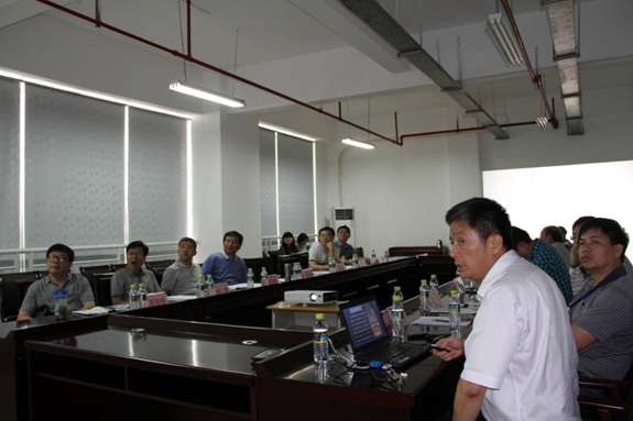 代亮首先代表三亞深海所對黃寧生院長一行表示歡迎,同時對廣州分院在籌建工作上給予的支持和指導表示感謝。隨后,代亮從建所背景、籌建方案、籌建工作進展、2013年的主要工作四個方面詳細介紹了三亞深海所籌建工作開展情況。總工程師張艾群作了關于組織凝練重大項目的專題匯報。深海科學研究部研究員李松海向分院領導匯報了海洋哺乳動物與海洋生物聲學實驗室建設情況。