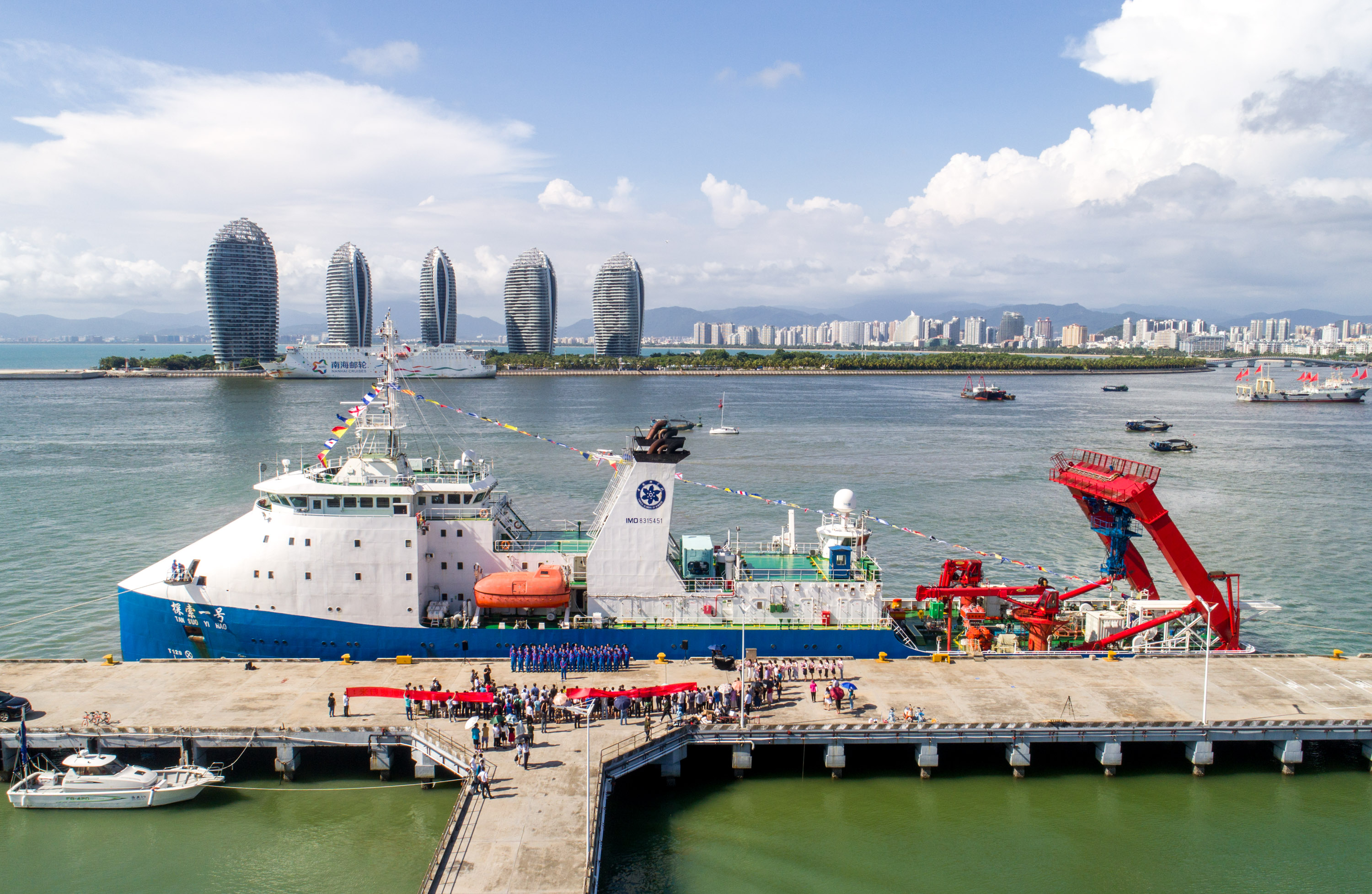 10月16日下午,由中國科學院深海科學與工程研究所、中國科學院沈陽自動化研究所等9家單位59名科考隊員組成的海斗深淵科考試驗隊,結束54天的馬里亞納海溝之旅,完成第三次萬米深淵綜合科考(TS09航次)任務,搭乘“探索一號”科考船順利返回三亞。在簡短的接船儀式后,在深海所舉行了航次成果發布會。