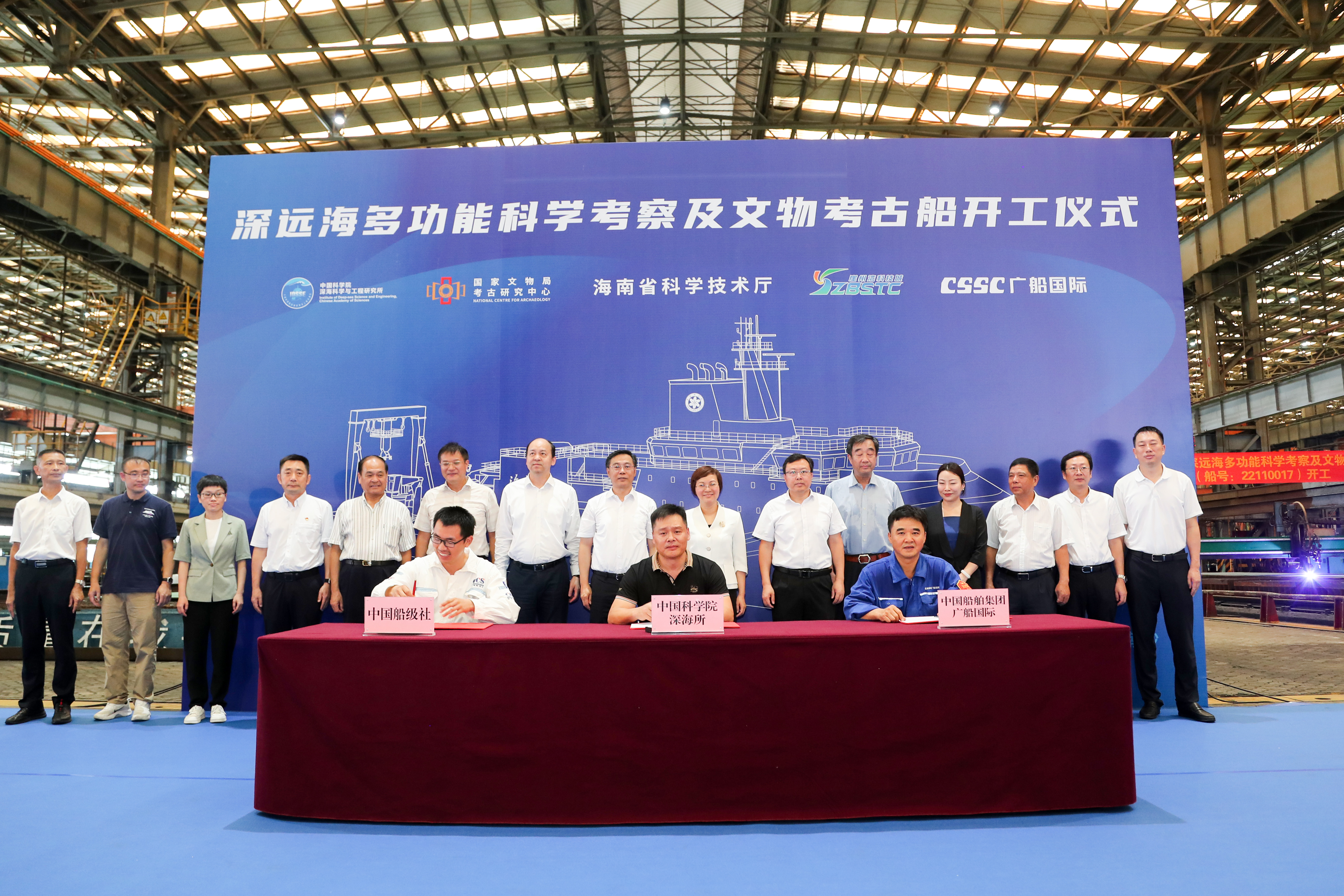 6月25日,由海南省人民政府、三亞崖州灣科技城開發(fā)建設(shè)有限公司聯(lián)合國家文物局、中國科學(xué)院深海科學(xué)與工程研究所出資建造的深遠(yuǎn)海多功能科學(xué)考察及文物考古船,在中國船舶集團(tuán)旗下的廣船國際有限公司廠區(qū)正式開工建造。