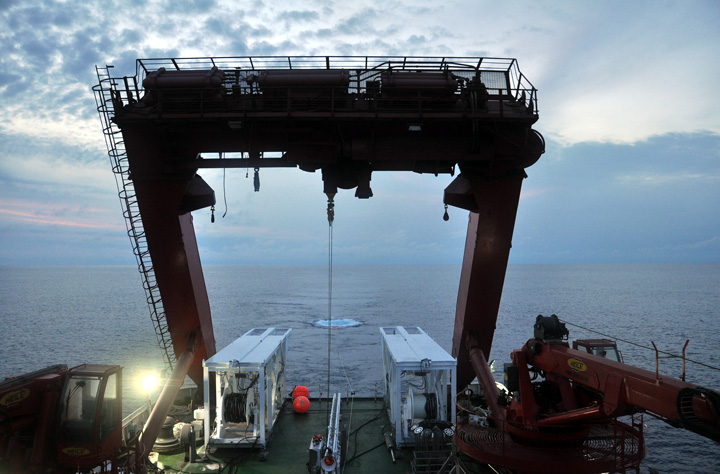 本航次的主要任務(wù)之一是檢驗(yàn)“探索一號(hào)”船的整體性能,并對甲板作業(yè)支持系統(tǒng)、地震系統(tǒng),空氣壓縮機(jī)、空氣槍等實(shí)驗(yàn)設(shè)備進(jìn)行現(xiàn)場調(diào)試及試驗(yàn)。經(jīng)測試,“探索一號(hào)”的整體性能良好,工程師們又對甲板作業(yè)支持系統(tǒng)、地震系統(tǒng)等進(jìn)行了調(diào)試,檢測了空氣壓縮機(jī)和空氣槍的鏈接問題并予以修復(fù),成功完成試驗(yàn)性布放。