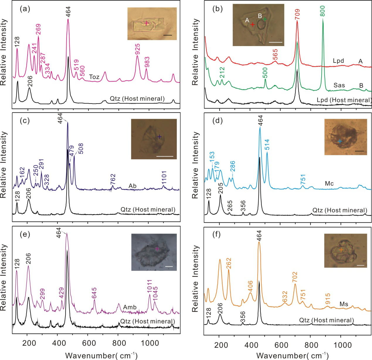 為此,深海所周義明研究員課題組嘗試從流體和熔體包裹體方面探索該礦床的形成機制。主要利用熱液金剛石壓腔和拉曼光譜儀對宜春Ta-Nb礦床不同礦化帶石英礦物中的包裹體的類型、成分以及完全均一溫度等進(jìn)行了實驗研究。實驗結(jié)果表明該礦床中的鹽水溶液包裹體所包裹的流體體系具有低均一溫度(160~240℃)、低密度(0.86~0.94g/cm3)和低鹽度(0.8~6.6 wt%NaCl)的特點;硅酸鹽熔體包裹體的子礦物主要為石英、鈉長石和白云母,其次還有少量的微斜長石、鋰云母、黃玉、天然硼酸和磷鋁鋰石;自二云母花崗巖帶→白云母花崗巖帶→鈉長石花崗巖帶→鋰云母鈉長石花崗巖帶,熔體包裹體中的鈉長石的含量呈逐漸遞增的趨勢,而SiO2的含量則逐漸遞減。由組分加權(quán)平均得到的熔體包裹體的密度也呈逐漸降低的趨勢;熔體包裹體均一實驗表明,硅酸鹽熔體包裹體的完全均一溫度為776~860℃,固相初熔溫度為570~710℃,且自下而上的不同礦化帶中,熔體包裹體的均一溫度呈現(xiàn)降低的趨勢。最終,通過實驗證明了宜春Ta-Nb礦床是巖漿連續(xù)結(jié)晶分異作用的結(jié)果,該成果發(fā)表在《Journal of Asian Earth Sciences》(Li et al., 2017;The formation of the Yichun Ta-Nb deposit, China, through fractional crystallization of magma indicated by fluid and silicate melt inclusions)上。