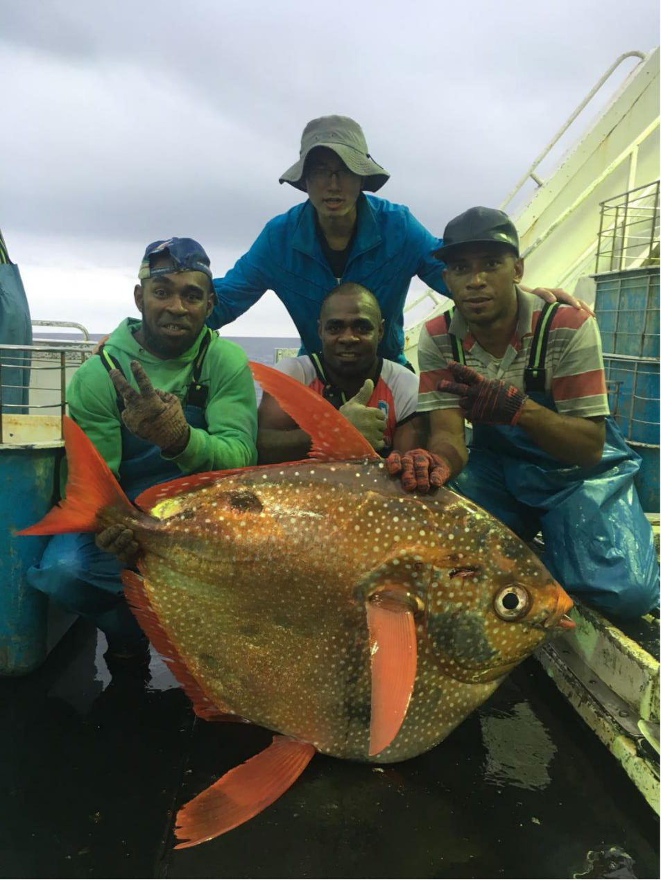 圖1 本研究采集的月魚樣品,拍攝于南印度洋,中國籍金槍魚延繩釣船“平太榮65號”。