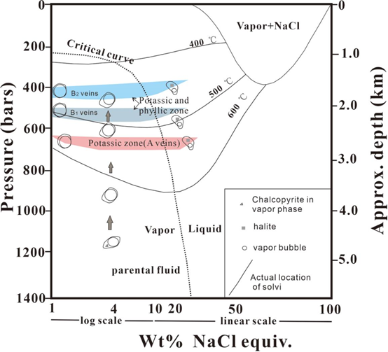 . 朱諾流體包裹體鹽度-壓力相圖(H2O-NaCl 體系)