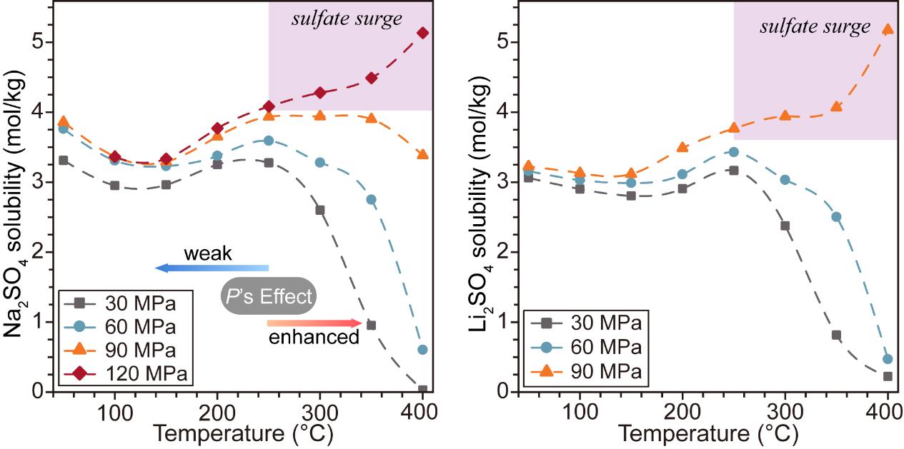圖1. 堿金屬硫酸鹽溶解度受壓力影響明顯