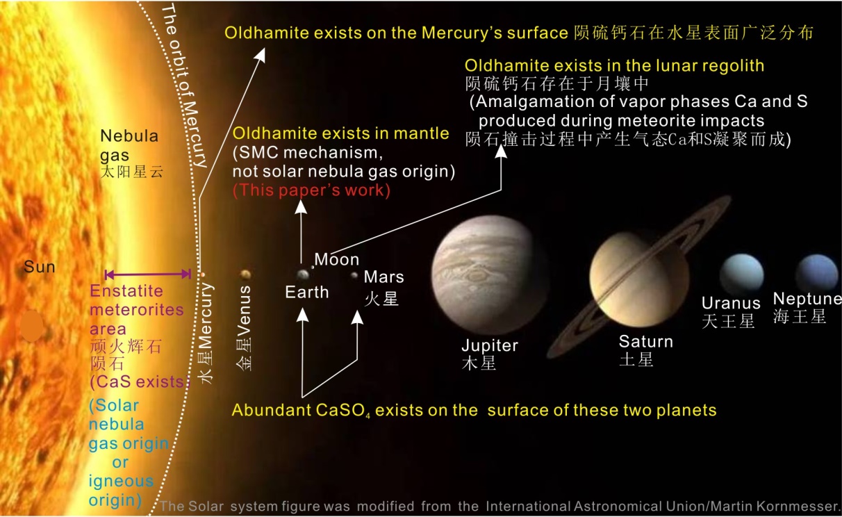 圖1. 太陽(yáng)系中隕硫鈣石CaS的主要分布區(qū)域(Liu et al., 2023)