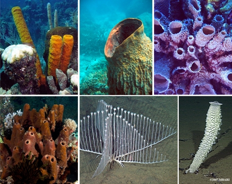 海綿為多孔動物們,學名Porifera,又稱作海綿動物門,分布于從潮間帶到深海、從熱帶海洋到南極冰海的廣泛區(qū)域內(nèi),是一類最原始最低等的水生多細胞動物。海綿是目前備受矚目的研究對象之一,一方面因為海綿中蘊藏著豐富的天然活性產(chǎn)物,具有巨大的潛在生物技術(shù)和藥用價值;另一方面海綿體內(nèi)存在著多樣性和高豐度的微生物群落,在地球生物圈碳、氮、硫循環(huán)方面發(fā)揮著重要作用。