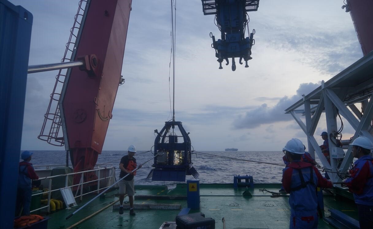 深海分體式電視抓斗用于可視化抓取深海底巖石樣品,最大工作水深6000米,空氣中重量3.7噸,水中重量2.9噸,最大取樣區(qū)域1.7m*1.2m,最大取樣體積2.6m3,分體式設計使得裝置電氣籃和斗體解耦,保證抓斗能夠在三級海況以內順利進行海上作業(yè)。電視抓斗參加“探索一號”TS09航次,在馬里亞納海溝弧后張裂區(qū)域成功完成8個站位海底巖石可視化抓取,獲取大量海底巖石樣品,最大作業(yè)深度3535米。由于取樣靈活,操作簡單可靠,具備一定市場潛力,該分體式電視抓斗已完成成果轉化。?